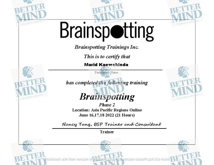 "บำบัดลึกถึงต้นตอความรู้สึกผ่านจุดสายตา (Brainspotting)" บางครั้งความเจ็บปวดก็ยากเกินจะอธิบายเป็นคำพูด Brainspotting คือเทคนิคที่ใช้นำทางผ่าน "จุดโฟกัสของสายตา" เพื่อเข้าถึงสมองส่วนลึกที่เก็บสะสมความเครียดและบาดแผลทางใจไว้ ช่วยระบายความทุกข์ที่ค้างคาอยู่ออกมาอย่างตรงจุดและมีประสิทธิภาพ