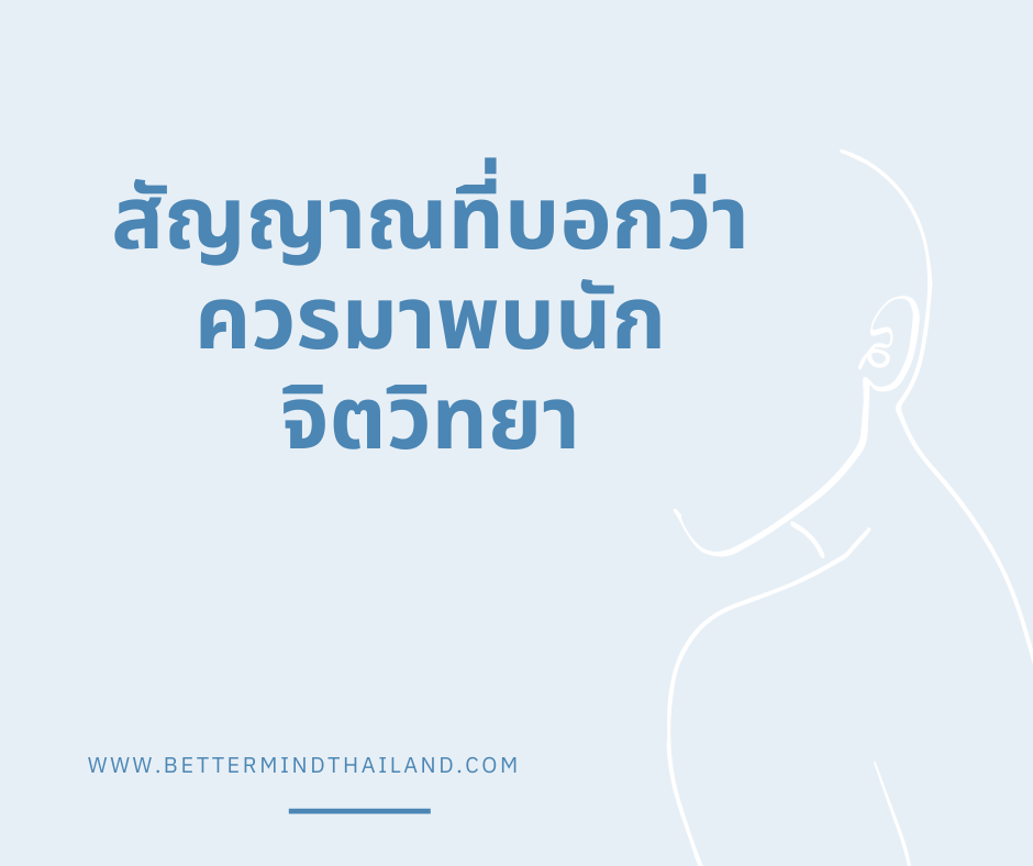 อย่างไรก็ตามหากเรามีสัญญาต่างๆดังนี้ก็ควรรีบมาพบนักจิตวิทยาด้วยเช่นกันไม่ควรรอช้าสัญญาณเตือนที่บ่งบอกว่าเราควรมาพบนักจิตวิทยามีอะไรบ้าง เราควรให้ความใส่ใจและหมั่นสำรวจตัวเองอยู่เสมอ