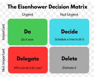 อาจใช้เทคนิคกราฟของ Eisenhower Matrix ด้านล่างนี้เป็นเครื่องมือช่วยจัดการลำดับความสำคัญด้านความคิดให้เรา