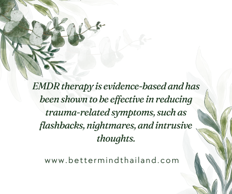 จิตบำบัดแบบ Eye Movement Desensitization and Reprocessing (EMDR) เป็นเทคนิคบำบัดด้านจิตใจที่มีประสิทธิภาพและใช้แนวทางการฝึกสติ (Mindfulness) ที่แตกต่างกันในการช่วยลดความเครียด ปรับสมดุลอารมณ์ และปลดล็อคความทรงจำด้านลบ