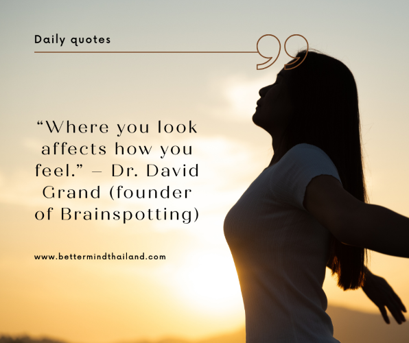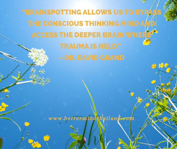 Brainspotting คือวิธีจิตบำบัดที่ค้นพบโดย David Grand, Ph.D. ซึ่งเชื่อมโยงการเคลื่อนไหวของดวงตากับการเข้าถึงความทรงจำหรืออารมณ์ที่ยัง “ค้างคา” อยู่ในสมอง