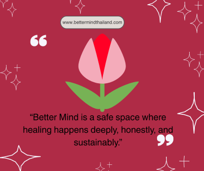 Better Mind ให้ความสำคัญกับการดูแลสุขภาพจิตแบบองค์รวม (Holistic Mental Health Care) โดยนักบำบัดจะทำงานร่วมกับผู้รับบริการอย่างใกล้ชิด สร้างพื้นที่ปลอดภัย อบอุ่น และไม่ตัดสิน เพื่อให้คุณสามารถสำรวจและเยียวยาความรู้สึกได้อย่างแท้จริง