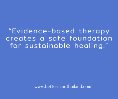 Better Mind Thailand ให้บริการดูแลสุขภาพใจและจิตบำบัดที่มีหลักฐานทางวิทยาศาสตร์รองรับ เช่น EMDR และการบำบัดรูปแบบอื่น ๆ ตามความเหมาะสมของแต่ละบุคคล